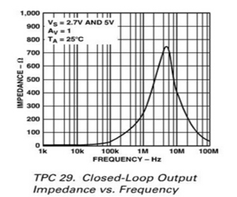 運(yùn)放輸入本身可能呈很大的容性,模擬Cpar。特別是低噪聲和低Vos放大器具有大的輸入晶體管,其輸入電容比其它放大器都要大,會(huì)加載它們的反饋網(wǎng)絡(luò)。就像反饋電容可能侵蝕相位余量一樣,它也會(huì)加載電容。圖顯下示了在一些增益設(shè)置條件下AD8544輸出阻抗與頻率的關(guān)系。注意,單位增益輸出阻抗要低于更高增益的阻抗。完整反饋允許開環(huán)增益減小放大器的固有輸出阻抗。這樣,下圖中增益為1的輸出阻抗一般要高出單位增益結(jié)果10倍。反饋衰減器會(huì)降低環(huán)路增益使之到1/10值,否則會(huì)減小閉環(huán)輸出阻抗。開環(huán)輸出阻抗約750,從增益100曲線高頻區(qū)的平坦部分很容易看出來。在從大約增益帶頻率/100到增益帶寬頻率的這段區(qū)域中,基本上沒有足夠的環(huán)路增益可減小開環(huán)輸出阻抗。如下圖: