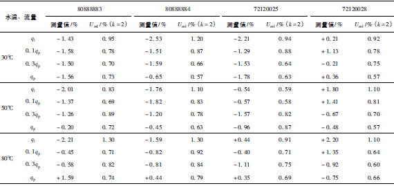 表7-1 熱量測(cè)量值與參考值之差值的擴(kuò)展不確定度(k=2)表 %