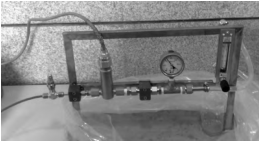 熱式質(zhì)量流量計(jì)在出廠前均經(jīng)過出廠標(biāo)定,以確保其性能滿足要求。此外,為了驗(yàn)證流量計(jì)在主泵第三級(jí)密封泄漏流量測量場合的適用性,搭建了模擬試驗(yàn)裝置如圖2所示。試驗(yàn)裝置由玻璃轉(zhuǎn)子流量計(jì)、壓力表、Swagelok計(jì)量閥和管道組成。流量計(jì)探頭安裝在壓力表和閥門之間,測量信號(hào)通過電纜送至流量計(jì)的數(shù)據(jù)處理單元,并最終在顯示儀上進(jìn)行顯示。計(jì)量閥用于調(diào)節(jié)試驗(yàn)裝置的流量,玻璃轉(zhuǎn)子流量計(jì)測得的結(jié)果作為熱式質(zhì)量流量計(jì)測量結(jié)果的參考,壓力表用于試驗(yàn)裝置試驗(yàn)過程壓力的測量。