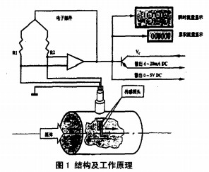 熱式質量流量計是利用加熱時液體溫度上升某一值所需的能量與液體質量之間的關系來測量液體或氣體質量的一種流量儀表。一般用來測量煤氣等氣體的質量流量。它具有壓損小,流量范圍度大,高精度,高重復性,高可靠性,體積小,易維護不易損壞等特點。早期的熱式質量流量計直接將加熱線圈和測溫元件放入液體中與液體接觸,是一種接觸式流量計,由于現(xiàn)場環(huán)境中普遍存在腐蝕、磨損及防爆問題,使它的工業(yè)應用受到了很 大的限制。到20世紀50年代,人們又提出了與液體不接觸的邊界層流量計,它克服了接觸式流量計的缺點,但測量結果受介質參數(shù)(如熱 導率,比率,粘度)以及環(huán)境的震動等的影響;到20世紀70 年代,基于測量液體溫度分布的熱分布型TMF,由于其獨特的優(yōu)點在國內備受青睞,可它有一種致命的缺點測微小流量 ,僅僅適用于小管徑測量,大管徑液體測量它就束手無策,正是在這些流量計的基礎之上,人們又設計了一種插入式TMF,它在國內得到了迅猛的發(fā)展,可以用來測量大管徑的氣體流量。