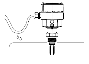 當(dāng)儀表安裝在戶外或有潮氣的環(huán)境中,如遇到下雨或村在冷凝現(xiàn)象時,雨水和冷凝水便會隨之往下流,所以在接入電纜之前,請將電纜線彎曲并朝下引,以防止水或潮氣進(jìn)入儀表,如圖3所示。
