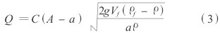 從式(1)和式(2)之間的關(guān)系,我們可以得到流量Q的計算公式為