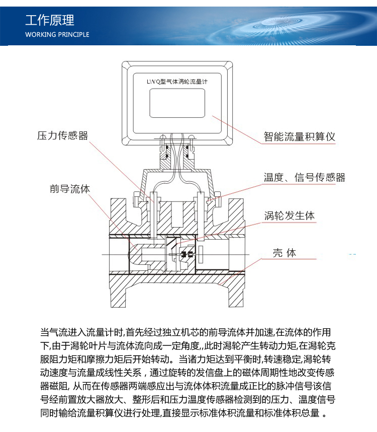 該類渦輪流量計(jì)按照供電方式、是否具備遠(yuǎn)傳信號(hào)輸出可分為L(zhǎng)WGQ-□B型和LWGQ-□C型。