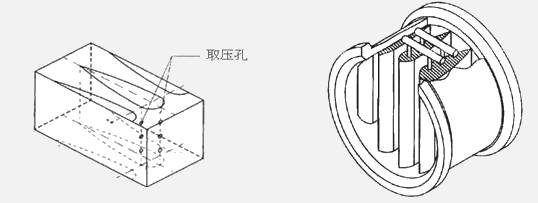 機翼測風(fēng)裝置是采用一種機翼形節(jié)流件的節(jié)流式流量傳感器。結(jié)構(gòu)原理圖如下: